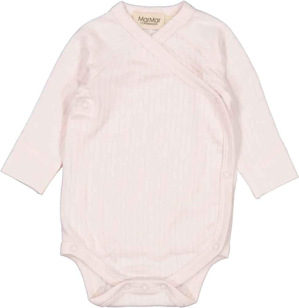 Langærmet bodystocking til nyfødte med slå-om-lukning. Bodystockingen lukkes med trykknapper og er både blød, strækbar og behagelig at have på.