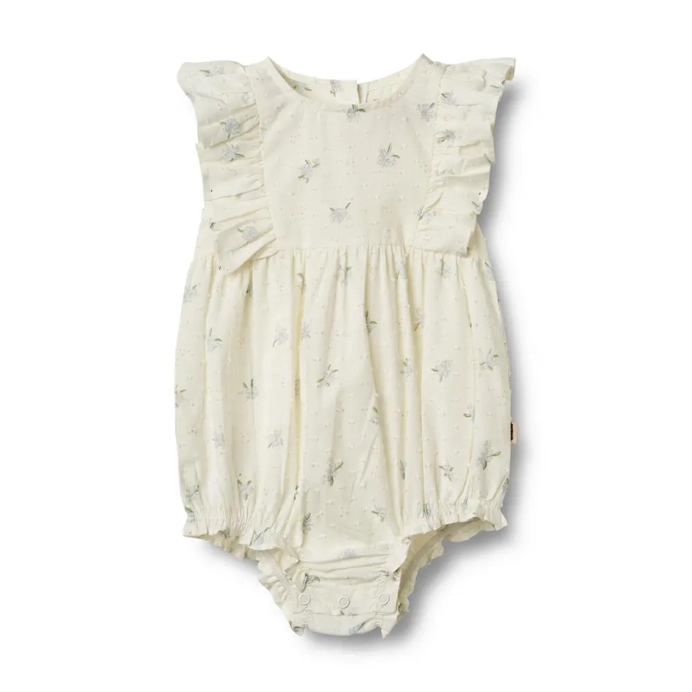Wheat’s bodystocking bringer en sød detalje til din babys garderobe. Den er behagelig at have på og har praktiske trykknapper i skridtet, som gør påklædningen nemmere. Denne heldragt er ideel til både særlige lejligheder og afslappede dage derhjemme. Kombinér den med en fin body og leggings for at skabe et charmerende look.