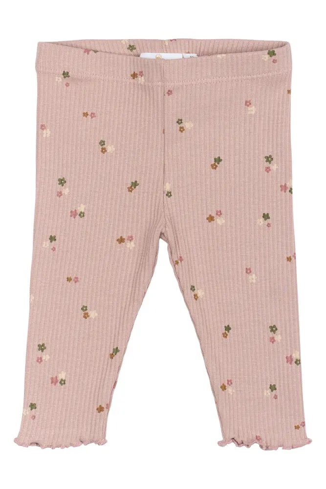 Disse ribstrikkede baby leggings har et charmerende blomsterprint. Kombiner dem med en bodystocking for et yndigt sæt.